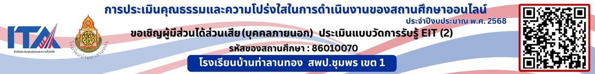 โรงเรียนบ้านท่าลานทองขอขอบคุณ ผู้ปกครอง ผู้รับบริการหรือติดต่อราชการ และผู้มีส่วนได้ส่วนเสีย ร่วมตอบแบบประเมิน EIT ประจำปี 2568